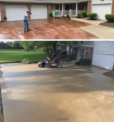 Power washing and soft washing in action.
